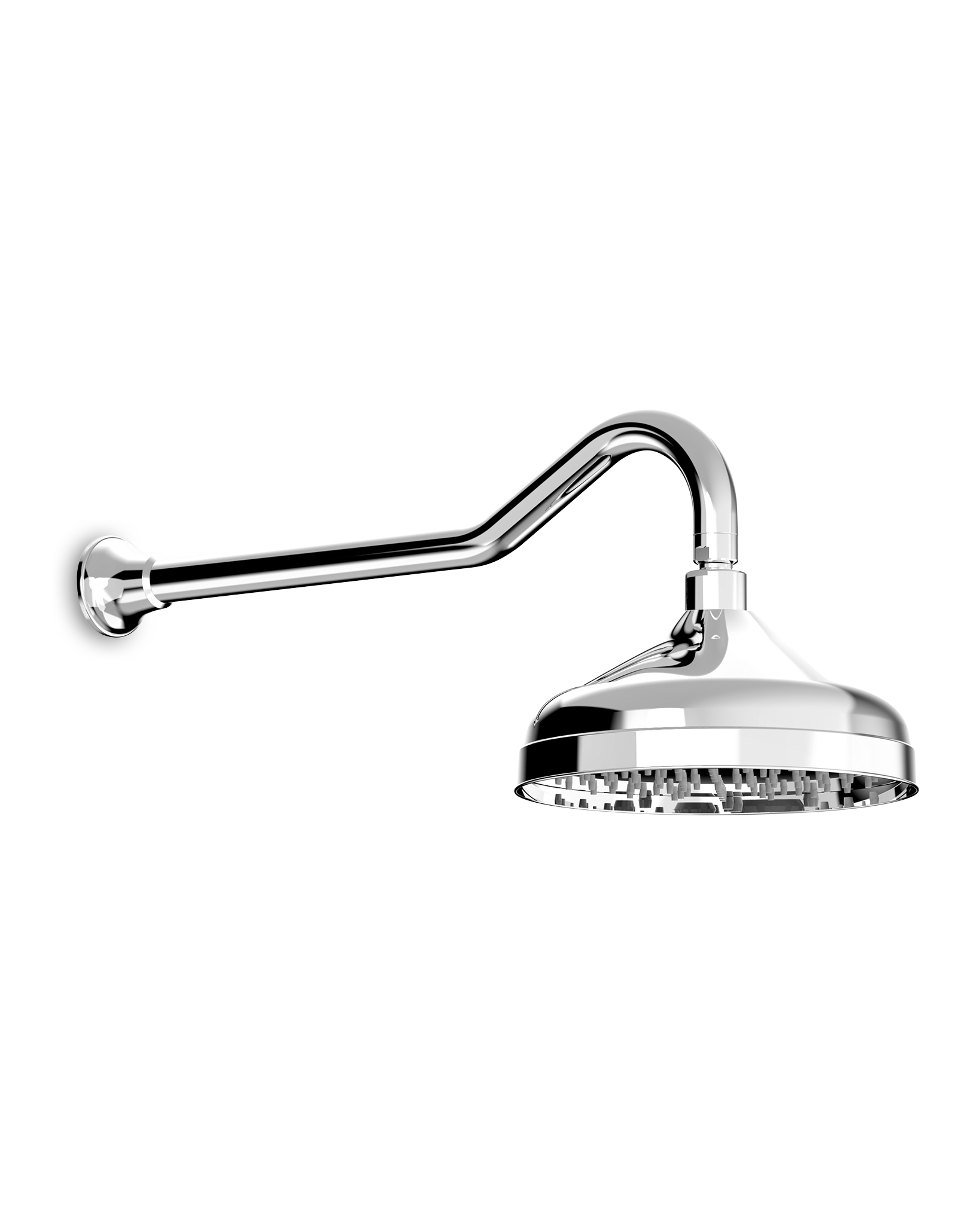 Cascade swan neck shower with a 400mm arm and 206mm round, swivel head length. Adjust with the swivel to angle your shower to suit your needs.