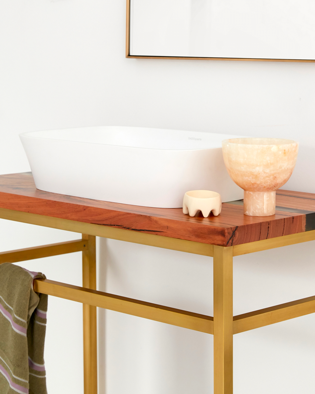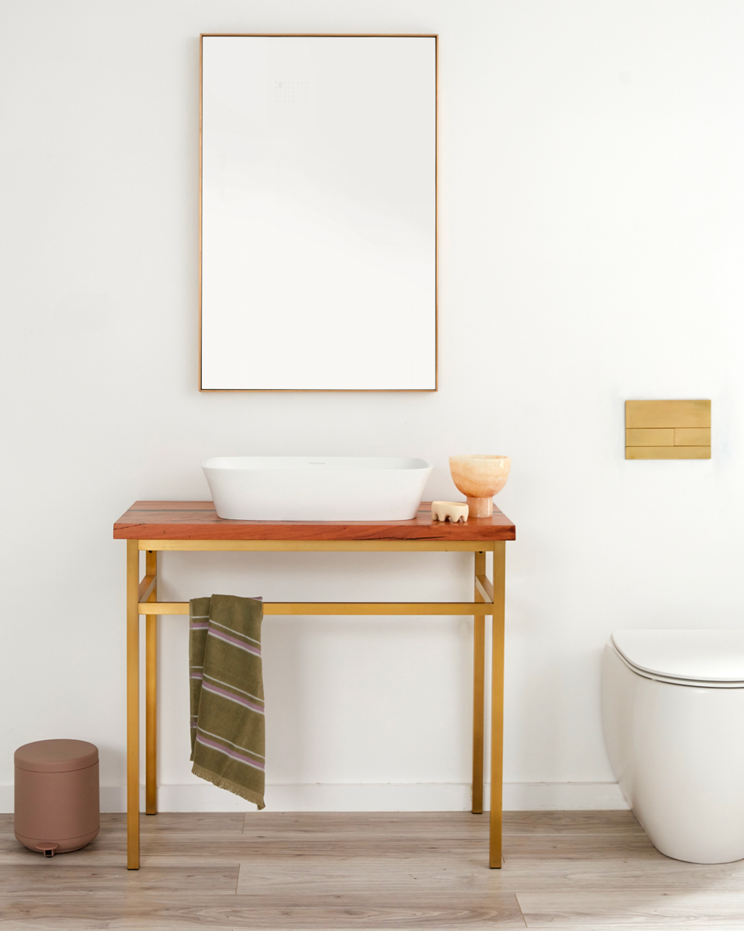 The timeless EVE vanity is a statement piece that emits elegance. Customise the benchtop to suit your space and needs. Pricing is inclusive of brass console ONLY. Top, tapware and basin to be purchased separately.