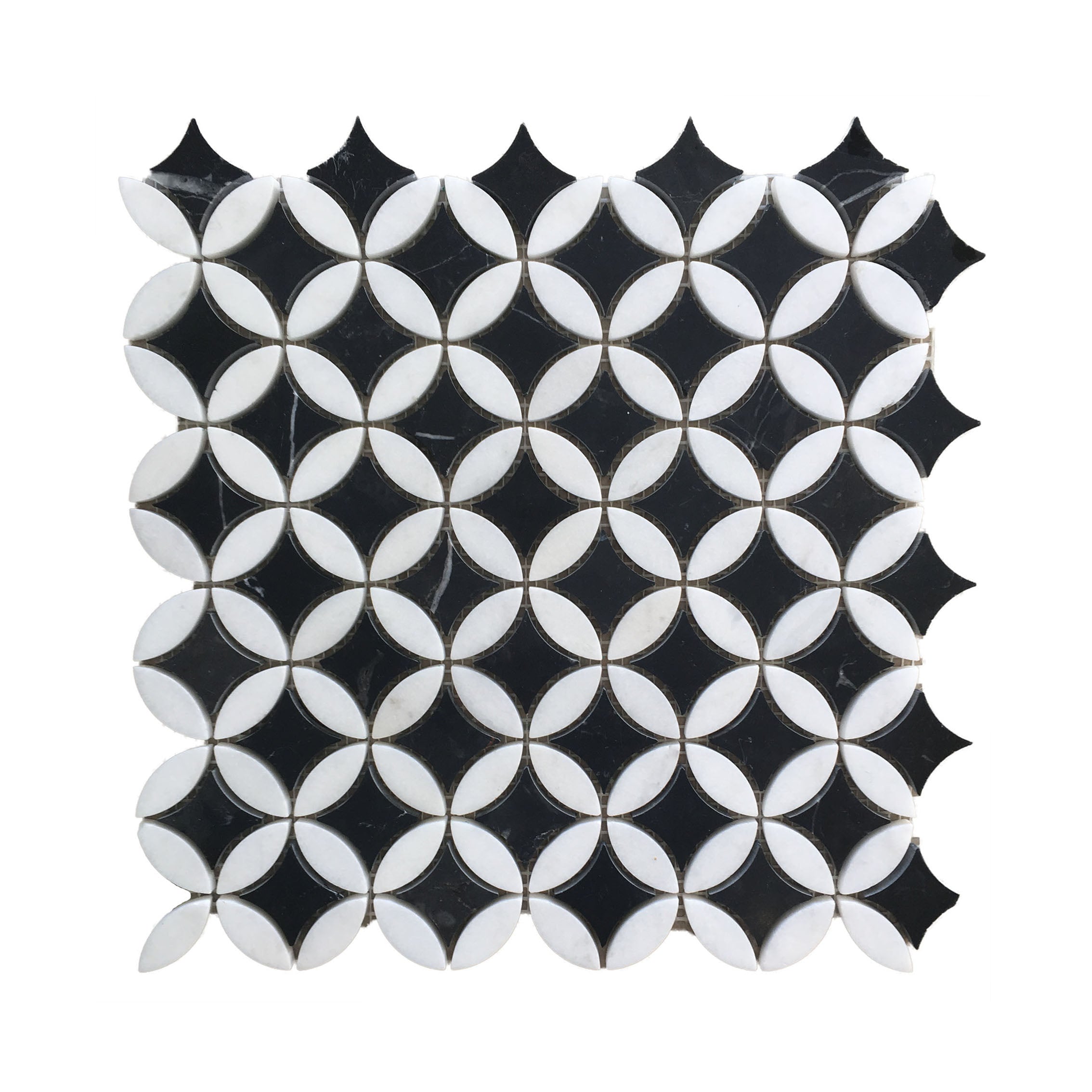Rosette Nero Marquina & Thassos Honed Mosaic 300x300mm
