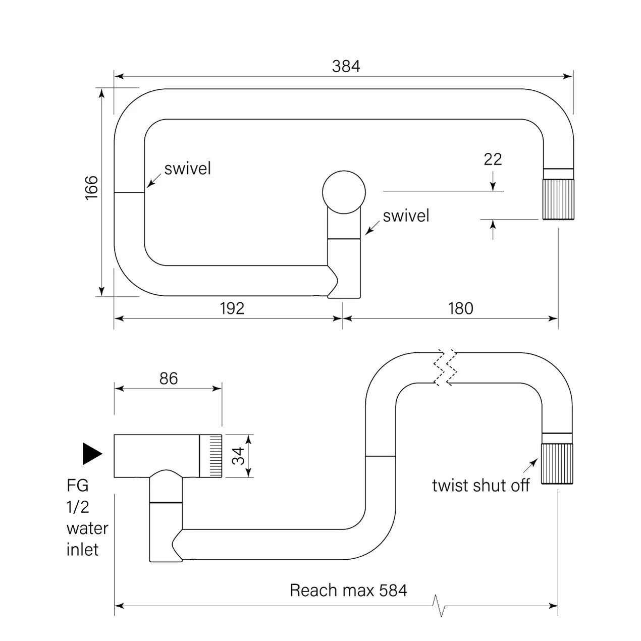 - Double swing arm for 584 reach to cover cooktop