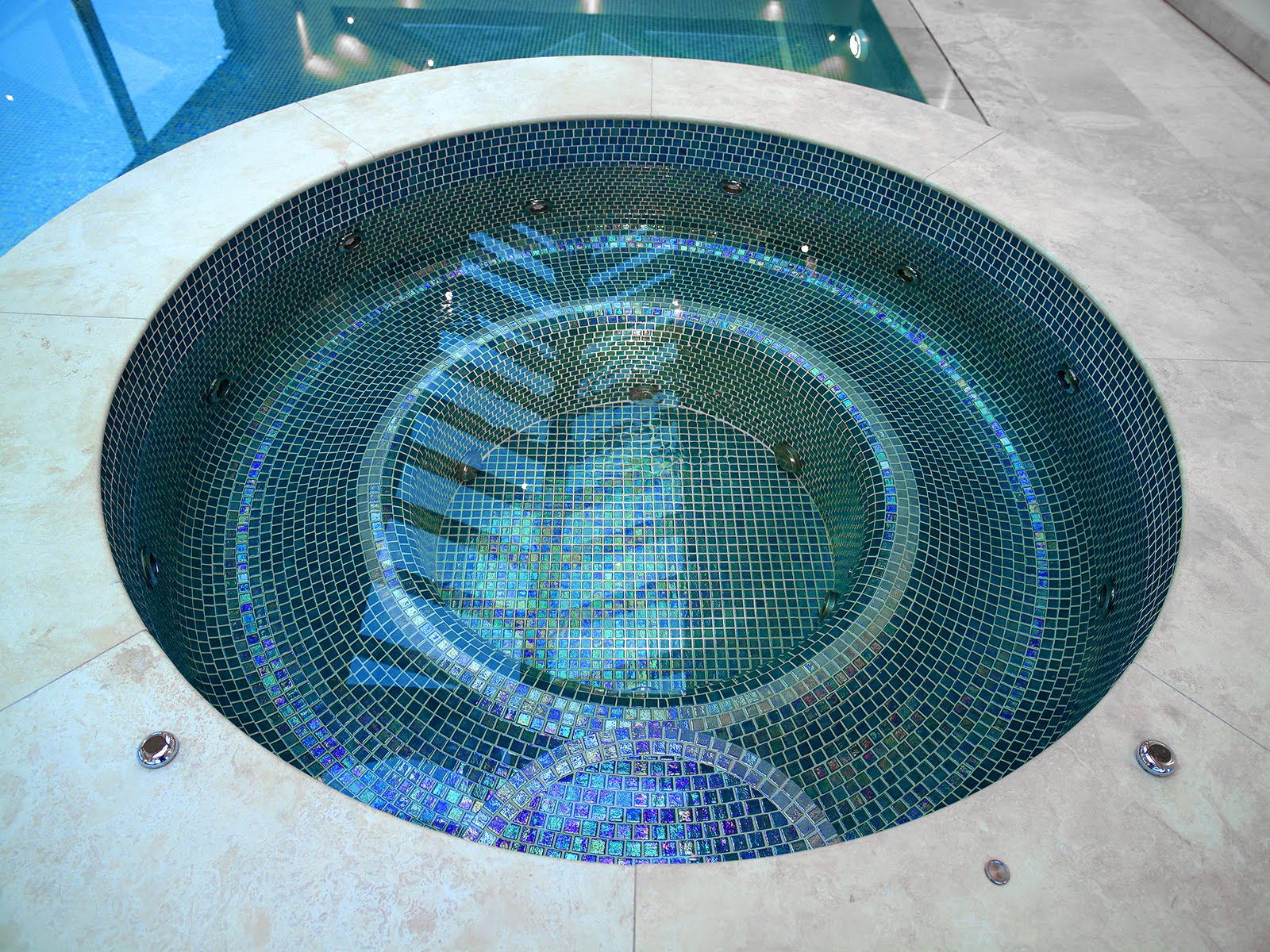 Jade, from the Iris collection, is a white iridescent mosaic specially designed for cladding interiors, swimming pools, spas, saunas and wellness spaces, and promotes relaxation and enjoyment. A treat for the senses.