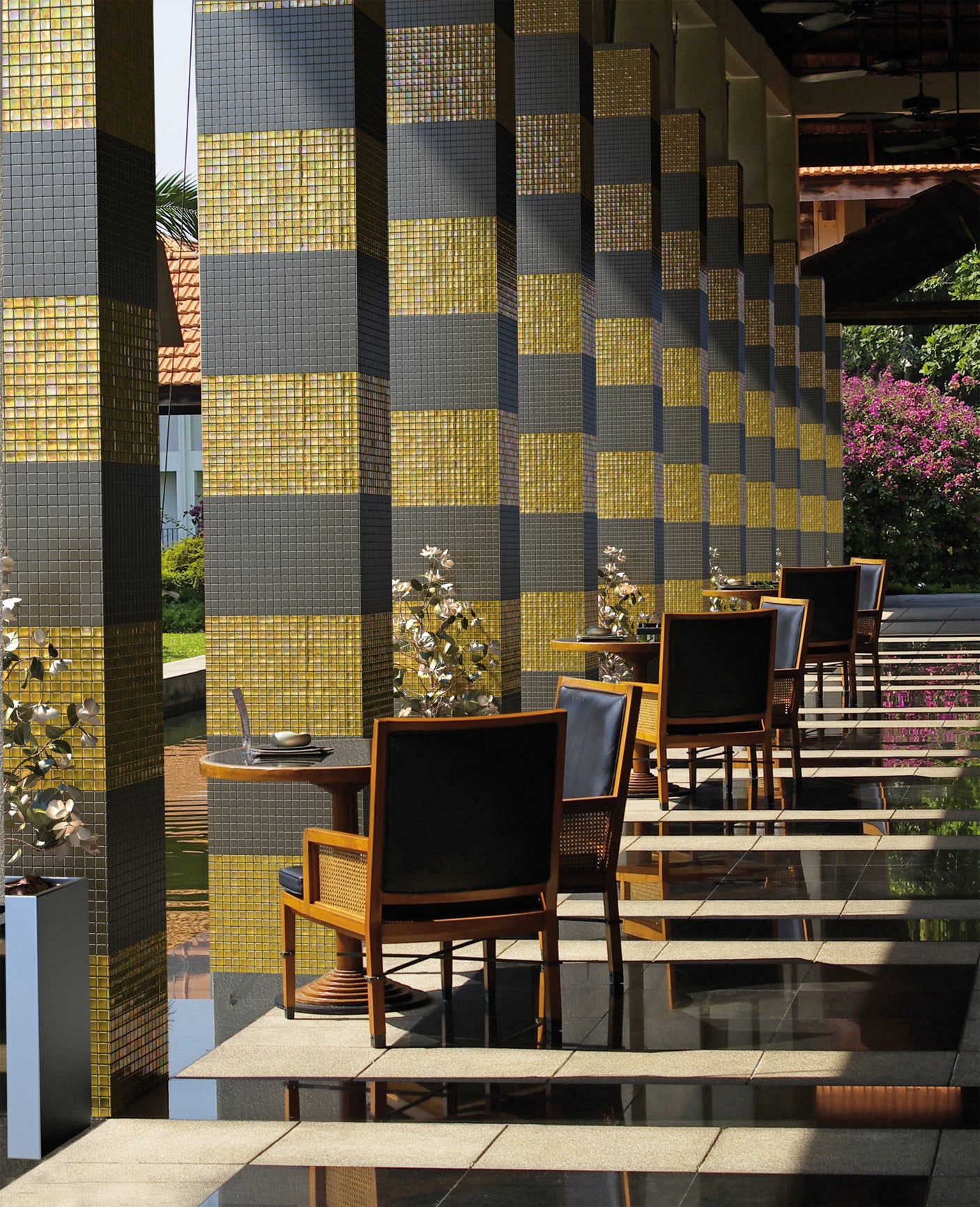 Aurum, from the metal collection, is a metallic-effect mosaic specially designed for cladding interiors, swimming pools, spas, saunas and wellness spaces. A feast for the eyes.