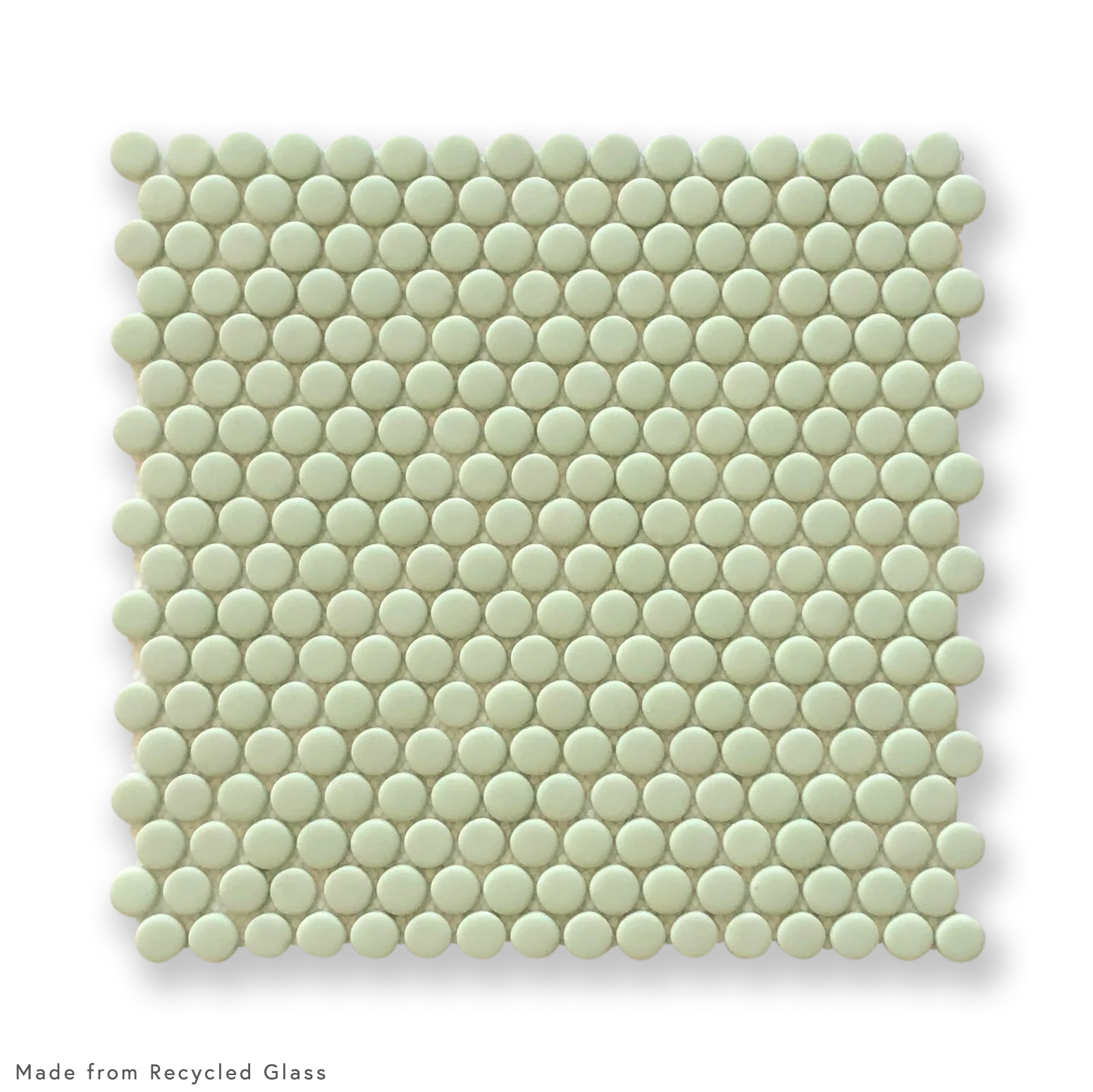 Our Recycled Glass mosaic range is made from 100% recycled glass and is available in 5 Colours - PINK, LIGHT GREY, DARK GREY, SAGE & ICE GREEN. Penny rounds are 18mm DIAMETER and comes in 301x304mm SHEETS.